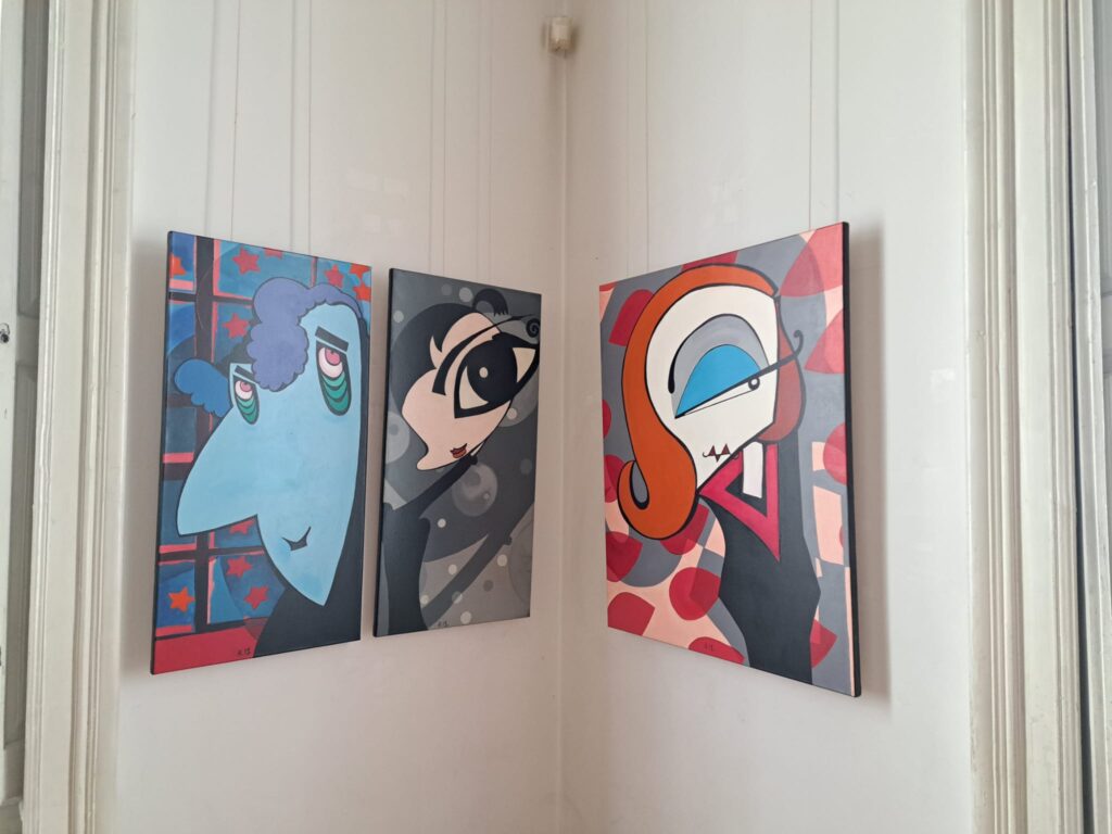 Lucrările expuse nu oferă portrete recognoscibile în sens clasic, ci mai degrabă propun o deconstrucție a chipului uman, reducând formele la esență. Cromatica puternică, contrastele și compozițiile sintetice creează o tensiune vizuală ce invită privitorul la reflecție.