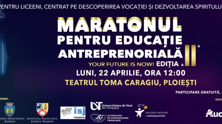 Confederaţia Naţională pentru Antreprenoriat Feminin (CONAF) – Sucursala Prahova, în parteneriat cu Inspectoratul Școlar Județean Prahova, Primăria Municipiului Ploiești și Instituția Prefectului Prahova, organizează luni, 22 aprilie, la Teatrul Toma Caragiu din Ploiești, de la ora...
